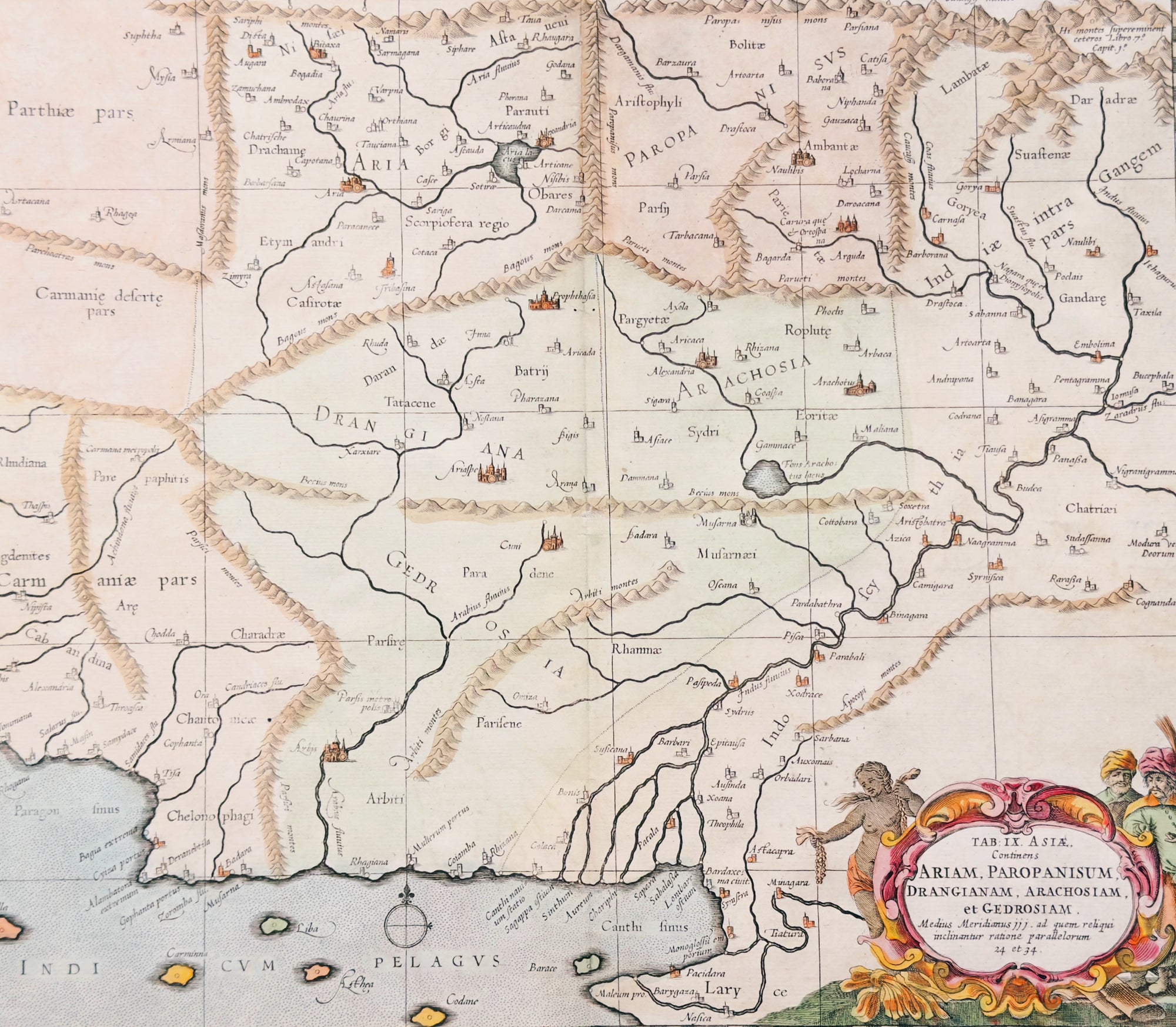 Description:This original copper plate engraved hand coloured antique map of the Indus Valley, today Afghanistan & Pakistan, after Claude Ptolemy's Geographia was published in the Helma Strick edition of Geographia in 1695.These maps, after the 1st century text by Claude Ptolemy, were first published by Gerard Mercator in 1578 edition of Geographia by Gottfried von Kempen